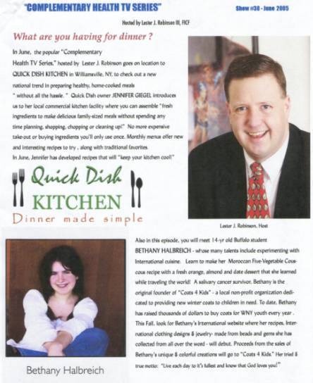 EVERY YEAR BETHANY RAISES MONEY TO BUY NEW WINTER COATS FOR UNDERPRIVILEGED CHILDREN BEFORE THE HOLIDAYS. HER COMMITMENT TO THE CAUSE OF CHILDREN & HER GENEROSITY OF SPIRIT IS EVIDENT IN EVERYTHING SHE DOES. TODAY SHE IS MAKING HER VERSION OF A MOROCCAN FAVORITE 5 VEGETABLE COUS COUS.